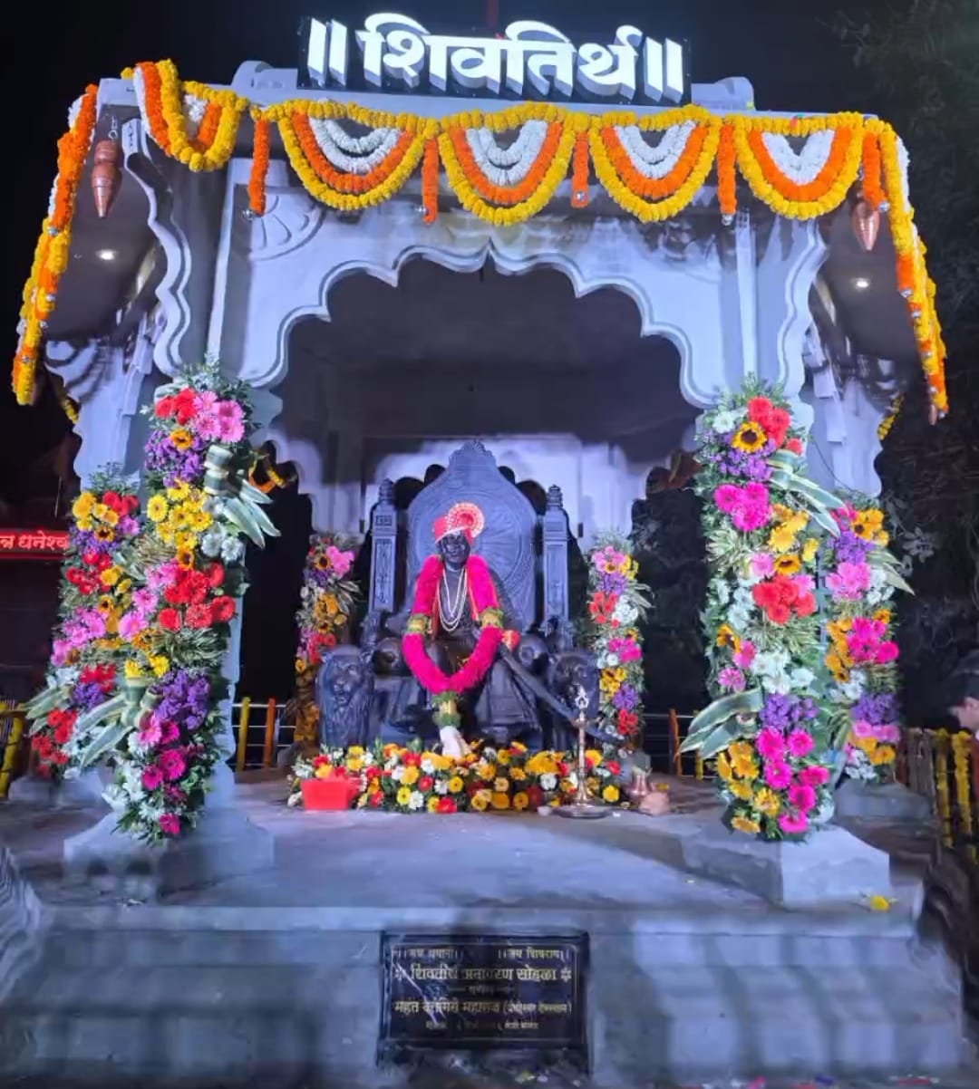 या ऐतिहासिक सोहळ्याची सुरुवात महाराजांच्या मूर्तीला मंगलमयी दुग्धाभिषेक घालून झाली. त्यानंतर ढोल-ताशांच्या कडकडाटात, सनई-चौघड्यांच्या सुरांत आणि “जय भवानी, जय शिवाजी”च्या घोषणांनी संपूर्ण परिसर दुमदुमून गेला. मान्यवरांच्या आणि हजारोंच्या संख्येने उपस्थित शिवभक्तांच्या उपस्थितीत भव्य महाआरती करण्यात आली. आकाशात फटाक्यांची आतषबाजी आणि विद्युत रोषणाईने उजळलेल्या वातावरणात उपस्थित जनसमुदायाचा जल्लोष ओसंडून वाहत होता.